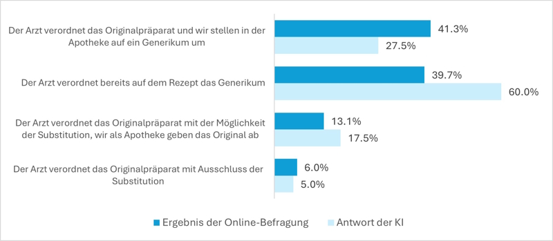 Wir haben folgende Frage sowohl durch 100 Apotheker:innen aus unserem Online-Panel als auch durch das KI-Tool Gemini beantworten lassen: